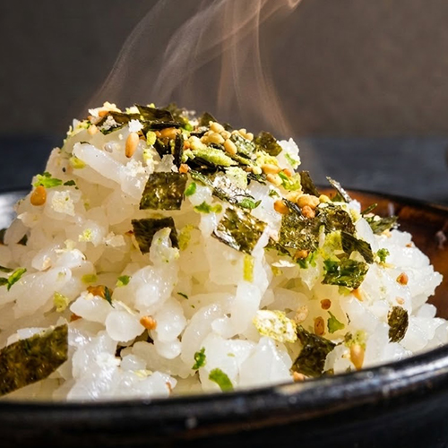 わさびの辛さをいかした、カルシウム豊富なわさびふりかけです。乾燥わさび茎を使用し、鰹・胡麻・海苔で風味を高めています。ほかほかご飯、おむすび、お弁当にふりかけて、お召し上がりください。
